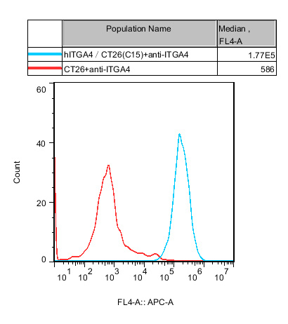 IV. Representative Data![]() Figure 1. Recombinant hITGA4/CT26 stably expressing ITGA4. |