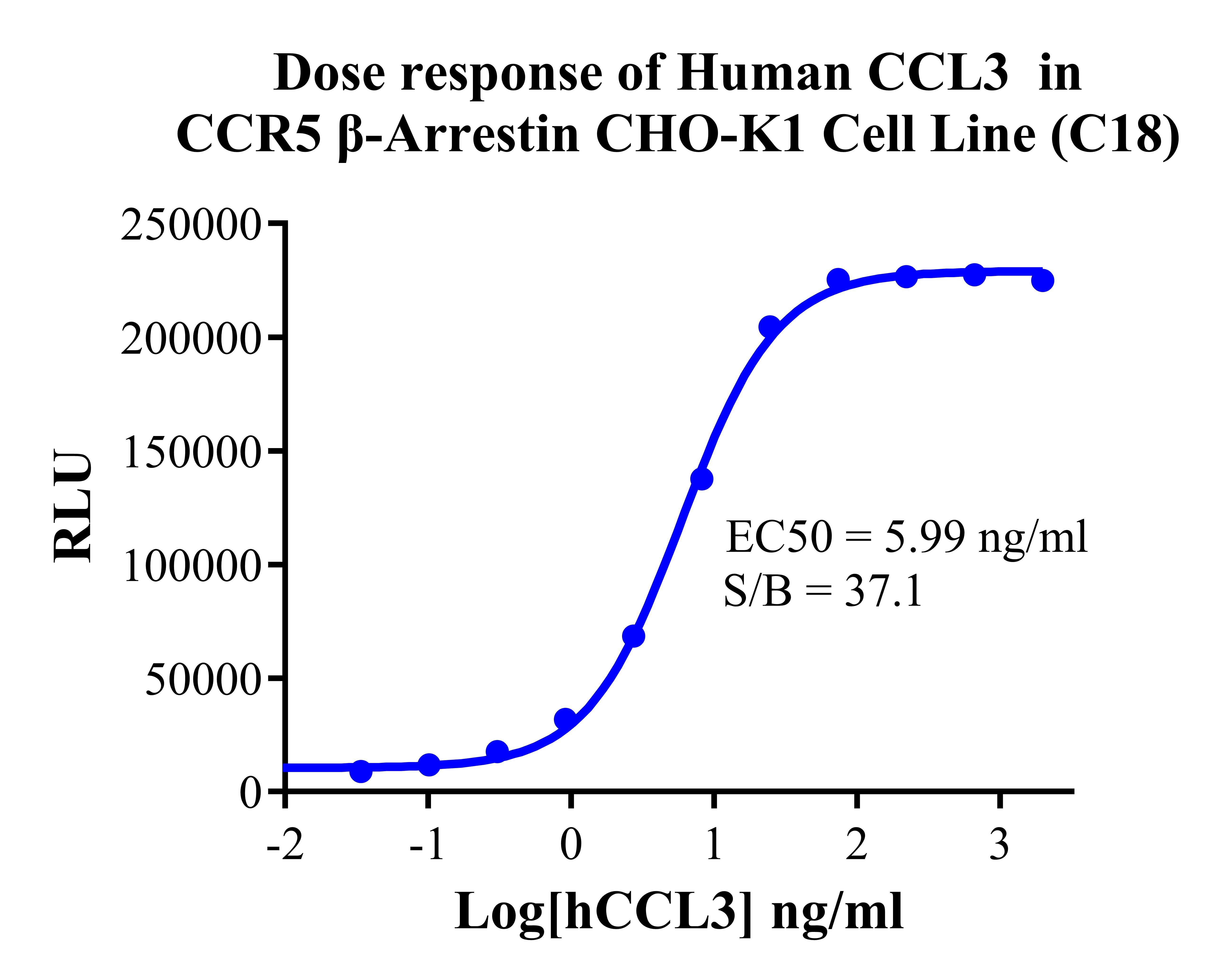 Figure 3. Dose response of Human CCL3 in CCR5 β-Arrestin CHO-K1 Cell Line (C18). |