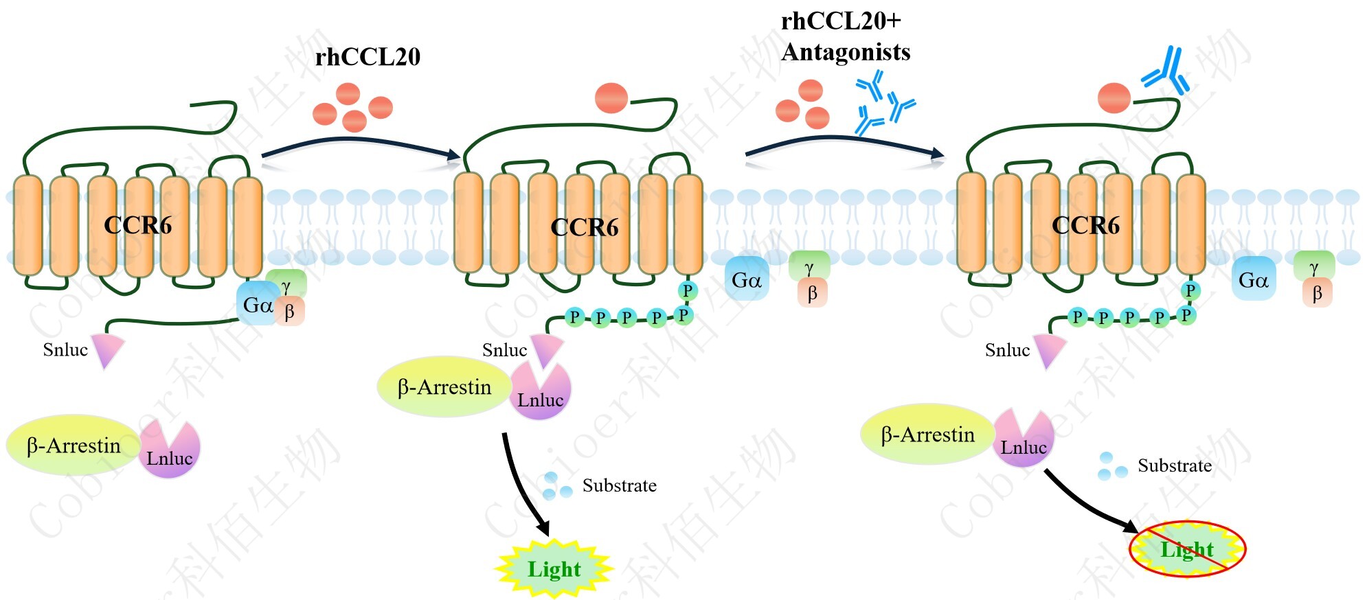 CCR6 β-Arrestin CHO 報(bào)告基因藥靶模型很好的模擬了體內(nèi) CCR6/β-Arrestin 的信號(hào)轉(zhuǎn) 導(dǎo)過程,原理見下圖所示。![]() Figure 1. CCR6 β-Arrestin CHO 細(xì)胞模型原理圖 |