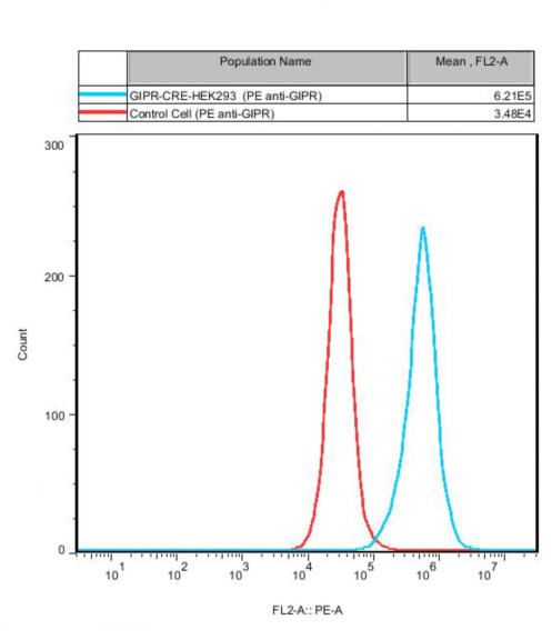 Figure 2. Recombinant GIPR/CRE-Luc/HEK293 stably expressing human GIPR. Figure 3. Dose response of GIP in GIPR CRE-Luc HEK293(C37). |