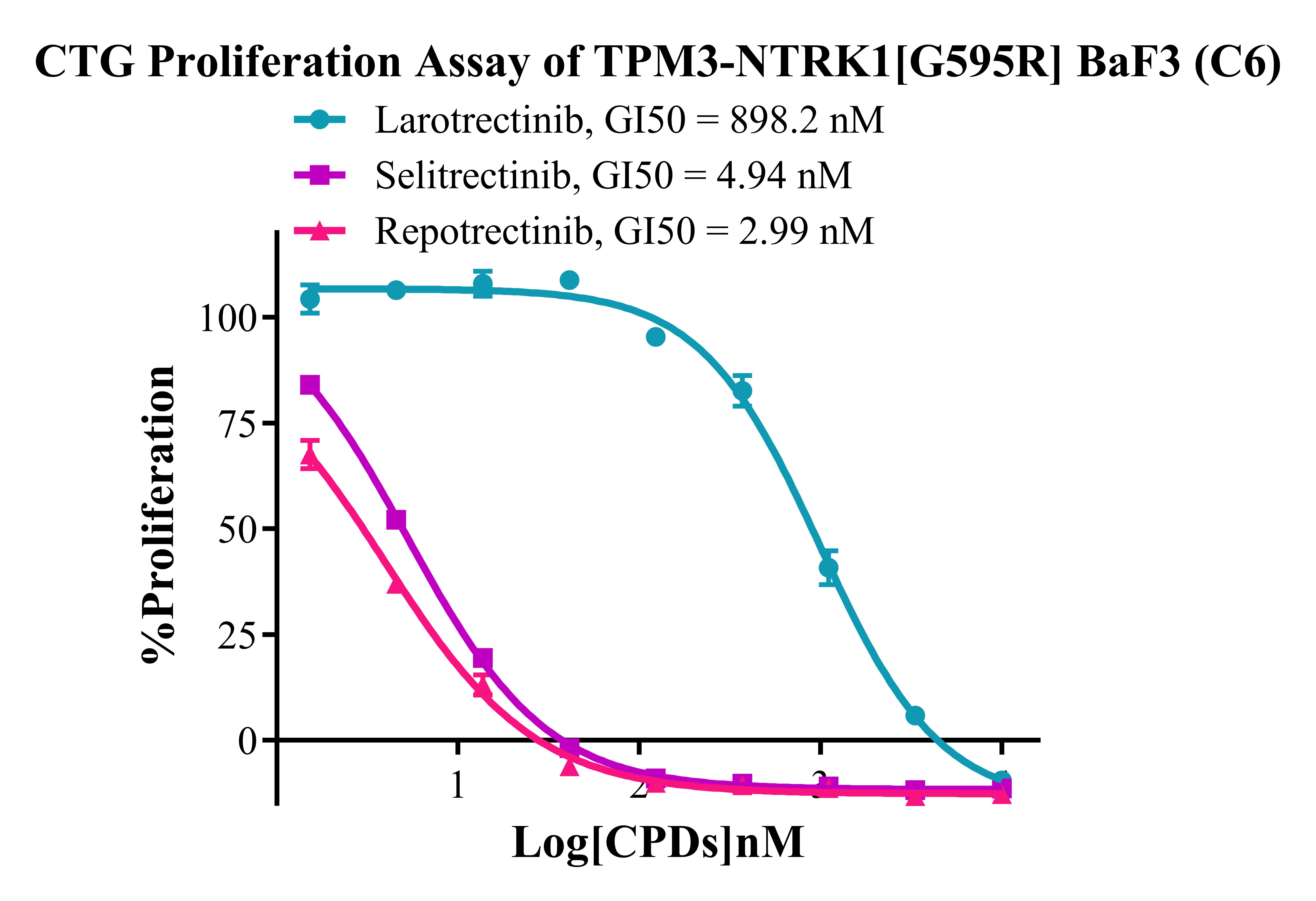 Figure 3. CTG Profliferation Assay of TPM3-NTRK1 [G595R]BaF3(C6). |