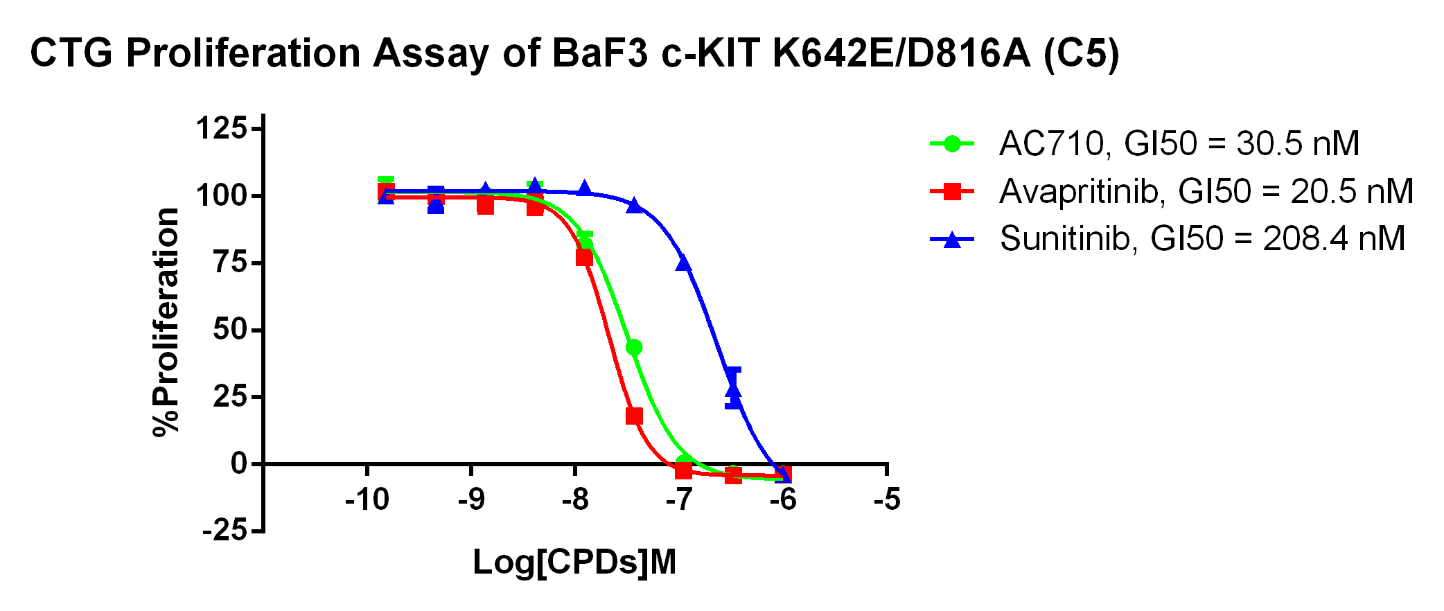 2. Anti-proliferation assay Figure 3.CTG Proliferation Assay of BaF3 c-KIT K642E/D816A (C5). |