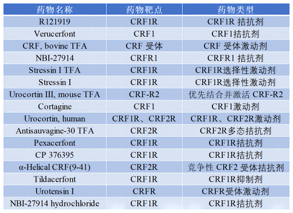 CRF1R和CRF2R主要是通過偶聯(lián)下游Gs蛋白參與體內(nèi)內(nèi)分泌系統(tǒng)、行為系統(tǒng)和免疫系統(tǒng)的壓力應(yīng)答。CRF1R和CRF2R在體內(nèi)被內(nèi)源性配體CRF和UCN1-3 激活。與UCN1對CRF1R和CRF2R都有高親和力不同,CRF對CRF1R的親和力明顯高于CRF2R,而UCN2和UCN3則表現(xiàn)出了對CRF2R選擇性激動劑的活性。