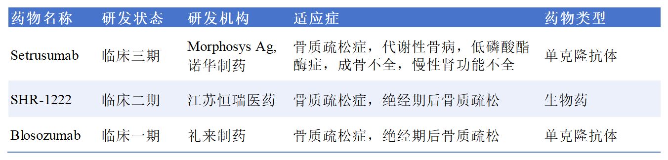 除已上市的Romosozumab抗體外,目前僅有三款靶向SOST的藥物處于臨床階段。