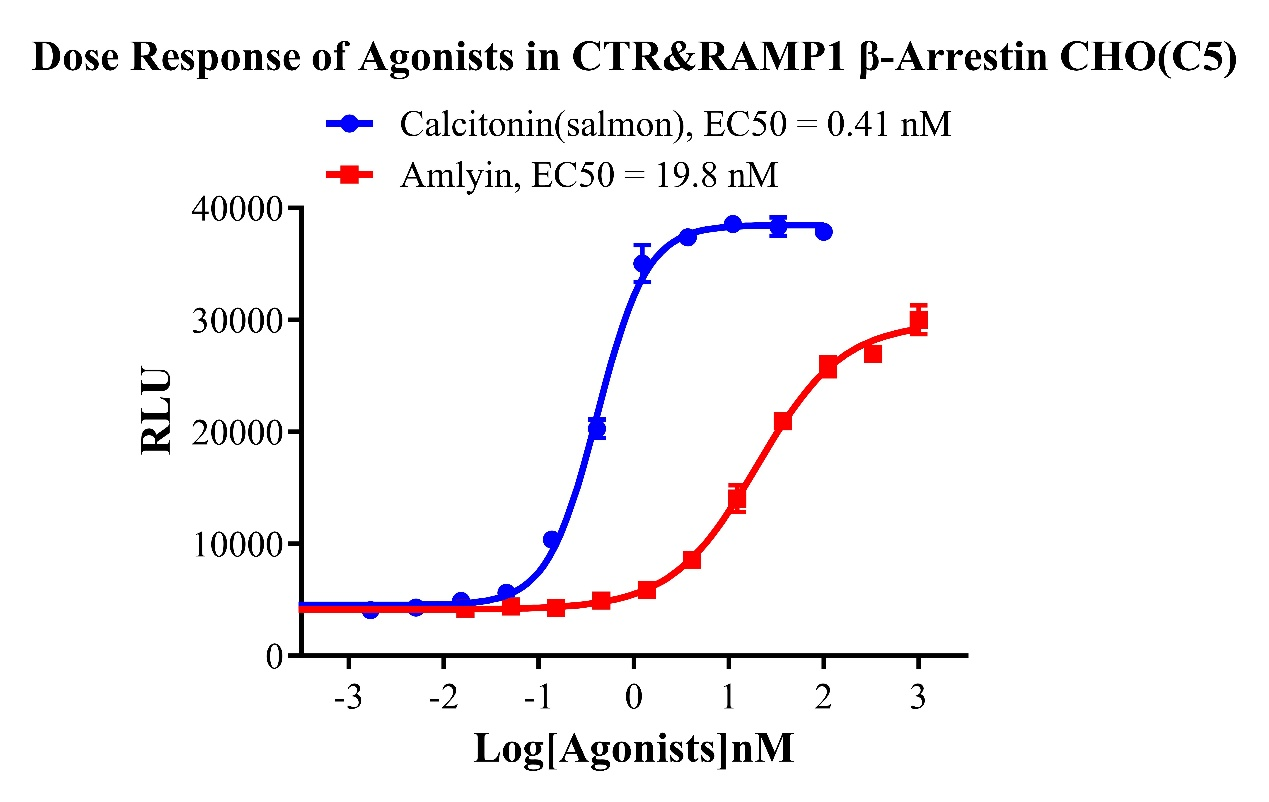 Figure 2. Dose response of Agonists in CTR&RAMP1 β-Arrestin CHO(C5).
